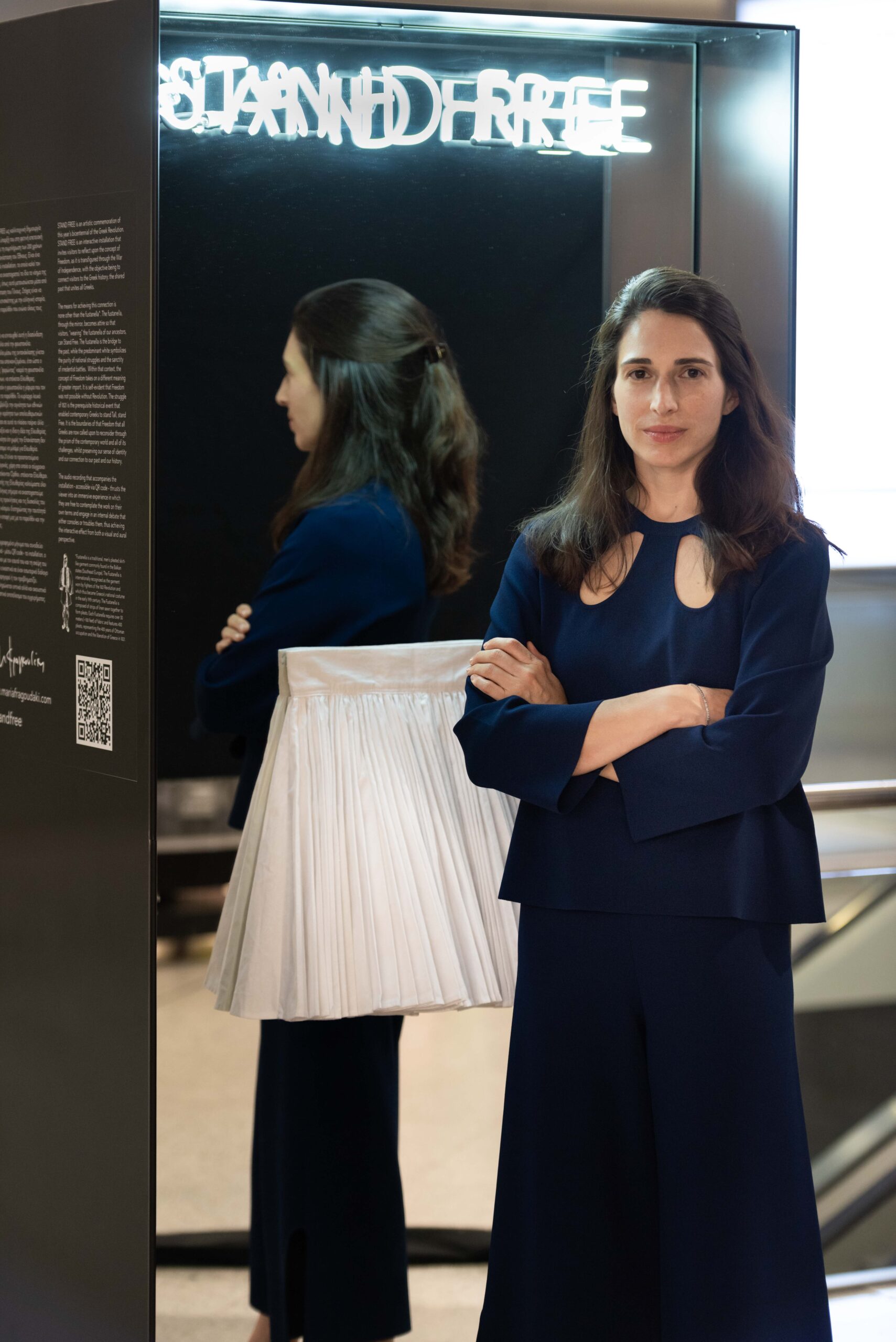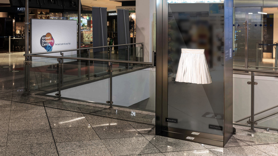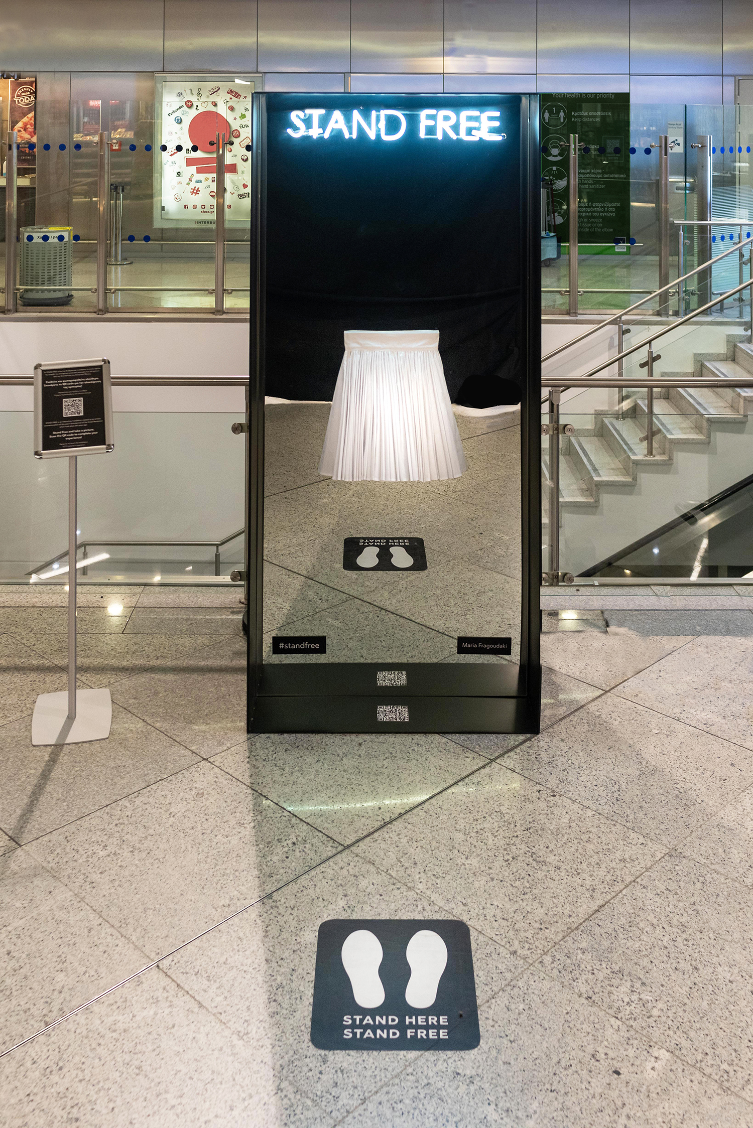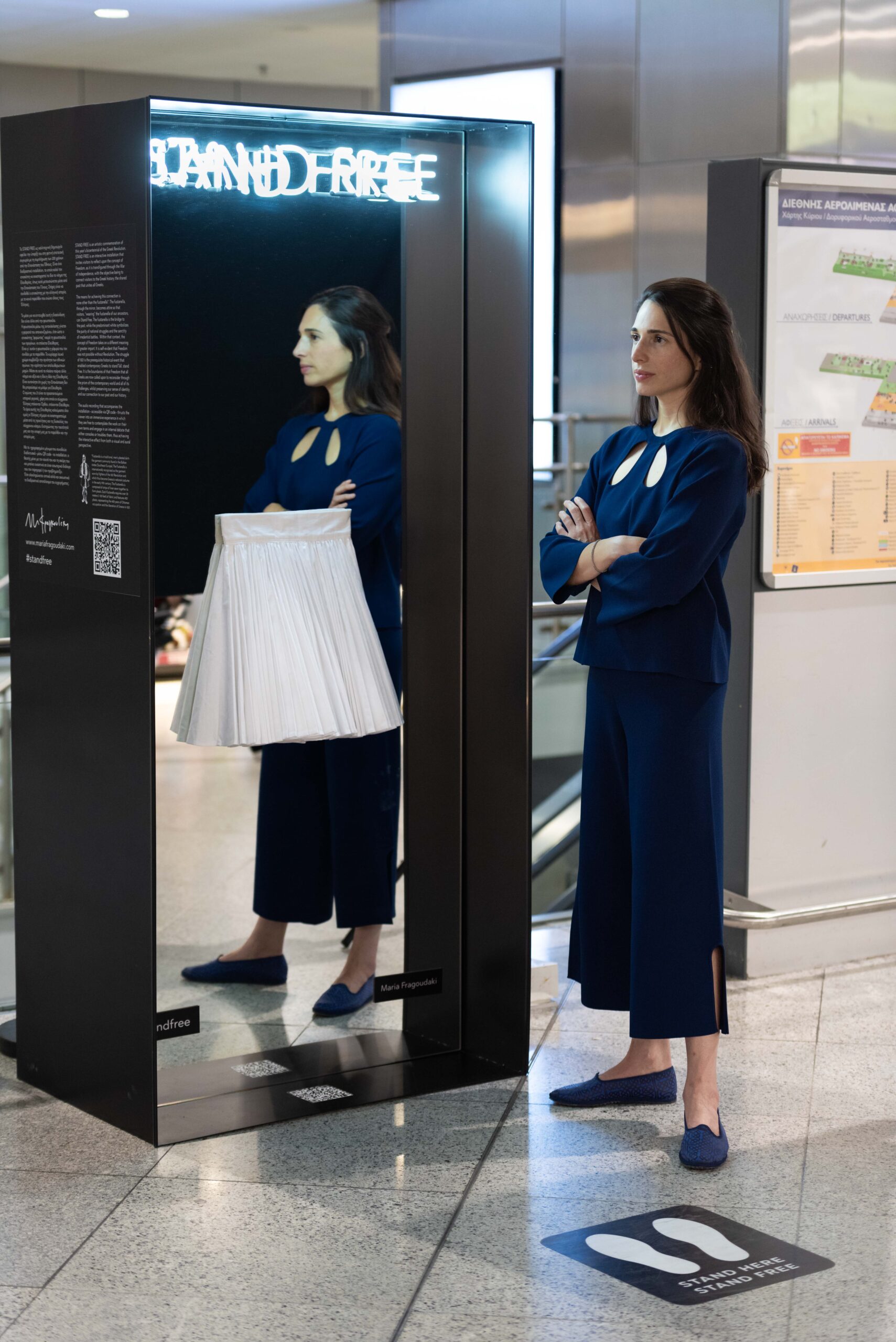 Το installation “STAND FREE” είναι τοποθετημένο στο επίπεδο 2 των αναχωρήσεων του Αερολιμένα, δίπλα στην έκθεση του Πολεμικού Μουσείου για το 1821.